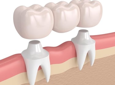 Strong, custom-made crowns and bridges restore missing or damaged teeth function and aesthetics.